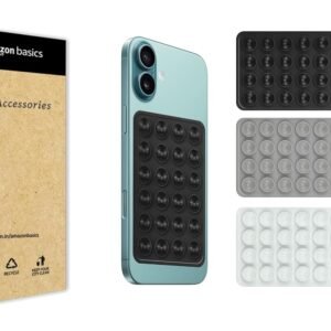 amazon basics Suction Phone Case Anti-Slip Silicone Hands-Free Sticky Pads for Phone Case Mount for Selfies Videos Mirror Shower Car Dashboard – Black,Gray,White (Pack of 3)