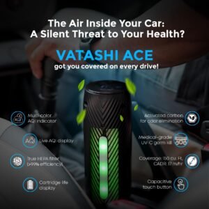 Ace Car Air Purifier | Medical grade, germs kill UV-C light | Live AQI | Dual Fan | Low Noise Level | Purifies 99.9% Air | Ideal for any car