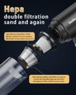 10000Pa Strong Suction Power, Deep Cleaning No Missed Spots: This small vacuum cleaner for dust comes with a high-speed double ball bearing motor that gives up to 10000Pa strong suction power. Whether it’s dust, pet hair, food crumbs, or cigarette ash, it picks up everything easily. Makes your car, home, or office look fresh and new. Just press one button and it starts cleaning right away.