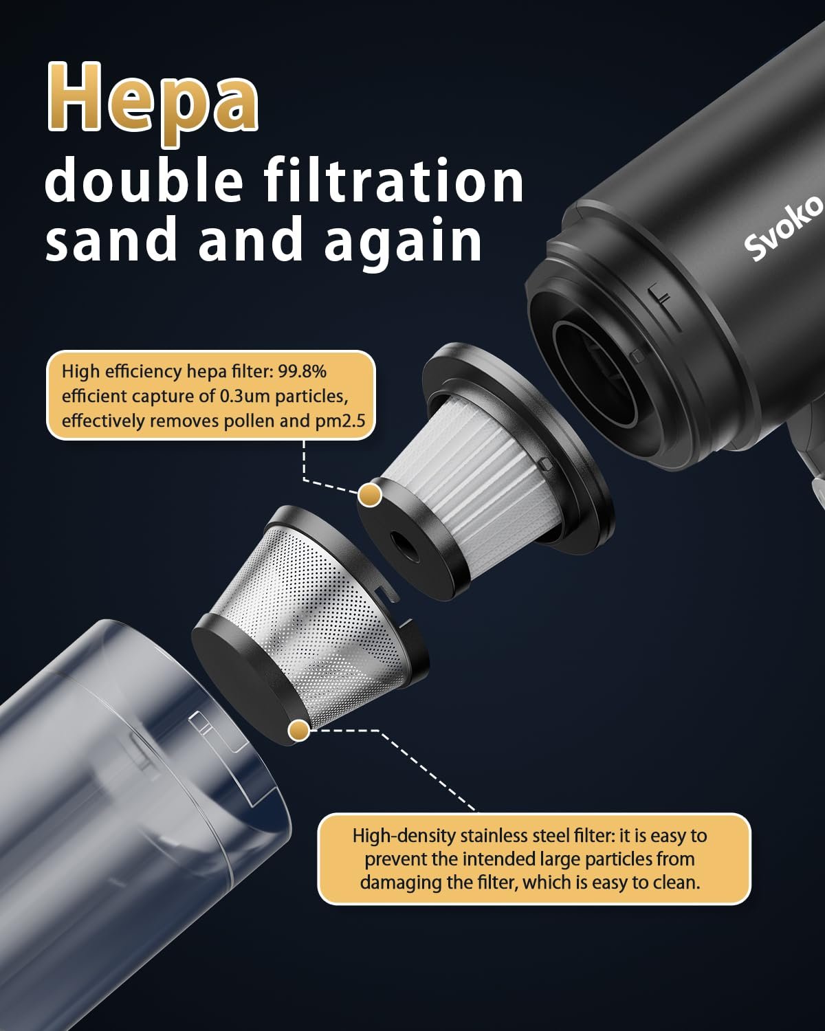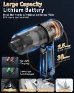Lightweight and Portable, Wireless Freedom: The unit weighs only 400 grams, feels light in hand, and you can operate it easily with one hand. Its vacuum cleaner cordless design means no more tangles from power cords, so you can clean tight spaces, under car seats, under beds, and corners easily. Compact size makes it easy to carry and store, whether in your car or home, without taking up much space.