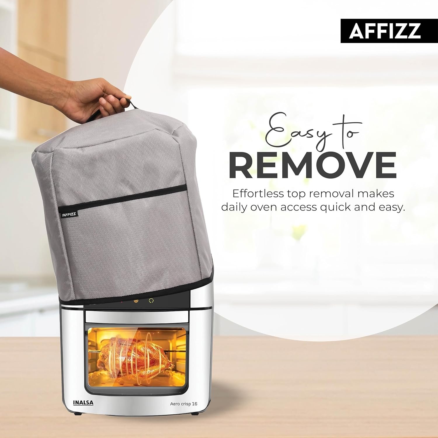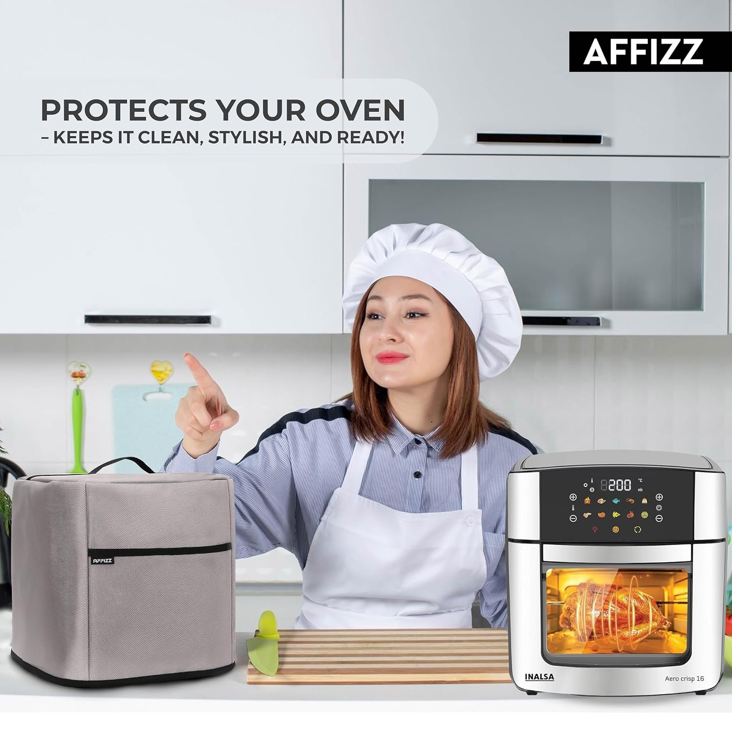 AFFIZZ Dustproof & Oil-Proof Air Fryer Cover for Inalsa 16 ltr – Polyester Waterproof Kitchen Oven and Home Appliances with Handle & Pocket | for Women, Men & Everyday Use, Grey