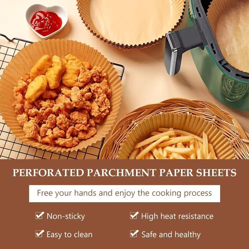 ound air fryer liners are made of food-grade silicone, which is oil-proof & heat resistant, withstands temperatures up to 450°F. Won’t affect the taste of the food at all! The Soft silicone also makes it easy to hand wash.