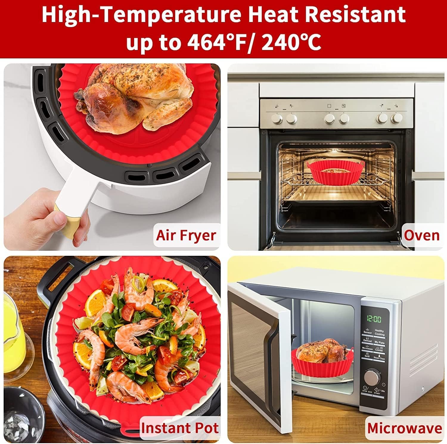 🍟【Heat Resistant & Food-Safe】- The air fryer silicone liners are made of safe food-grade silicone, BPA free, Non-toxic, Non-stick, scratch, abrasion, tear, dirt resistant and high-temperature heat resistant up to 464 ℉ (240℃), perfect replacement of flammable disposable parchment paper liners. Our silicone air fryer liner is reusable, will not deform or damage after hundreds of uses, it is the most valuable air fryer accessory.
