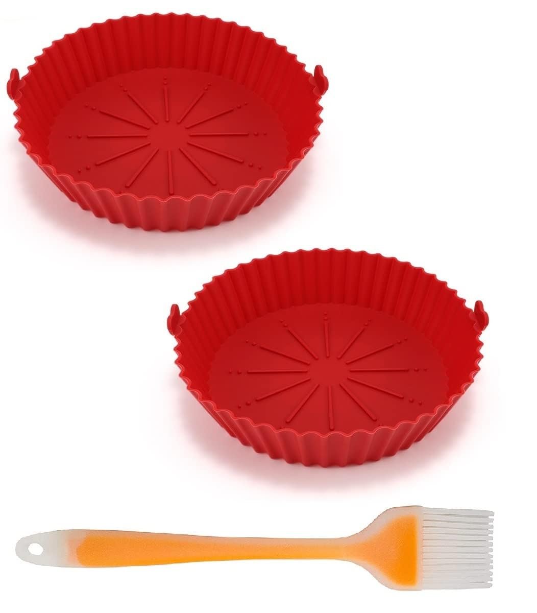 Air Fryer Silicone Air Fryer Liners Silicone Pot Reusable Food Grade Baking Basket Accessories Replacement of Flammable Disposable Parchment Paper (Red – 2, 9 IN)