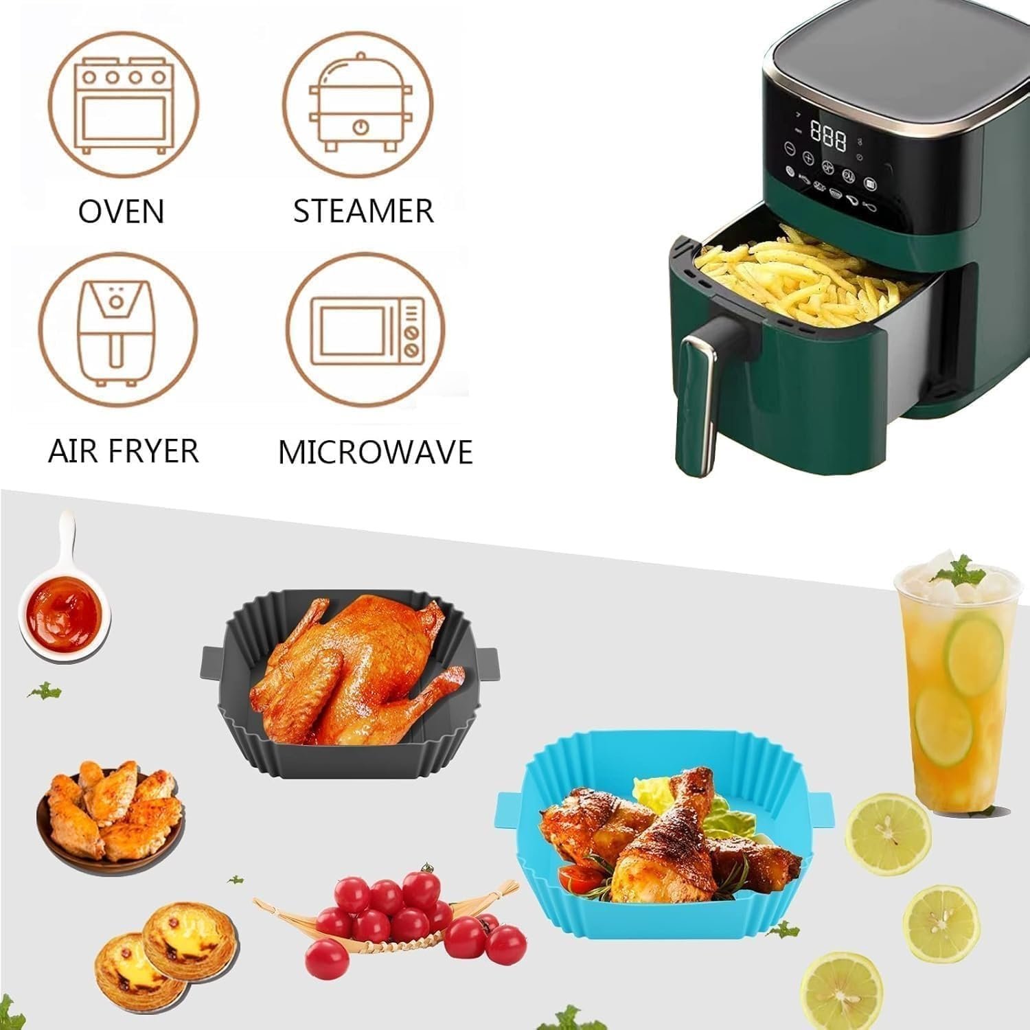 AJUS 2 Pack Silicone Air Fryer Liners Reusable, 8.6 Inch Airfryer Liners 4-7 QT Square Air Fryer Liners Silicone Pot Oven Liner Backing Tray, Air Fryer Basket (Multicolor)