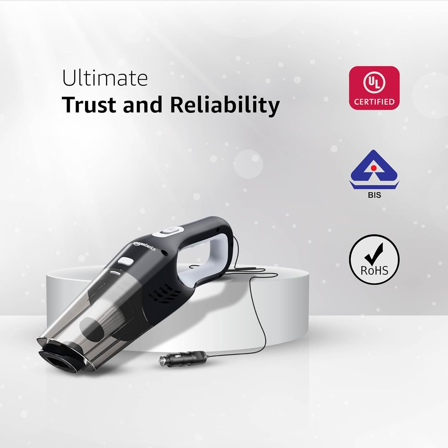 amazon basics Car Vacuum Cleaner | Portable Handheld | 5800PA Suction | 12V DC with 4.8m(15.7ft) Cord | Powerful BLDC Motor | Stainless Steel HEPA Filter