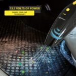 Compact but powerful corded, handheld car vacuum cleaner dispensing 13.7 volts of power with a 4.5 metre cord that cleans your car thoroughly.
