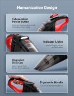 Super Wide-Angle LED Light: Super wide-angle light provides a clear view, users can easily clean the hairs, crumbs, dust, and waste in the dark, even the dim corners in the seat bottom. The LED light will light up in blue when the power is supplied to remind you of the vacuum cleaners’ power status.