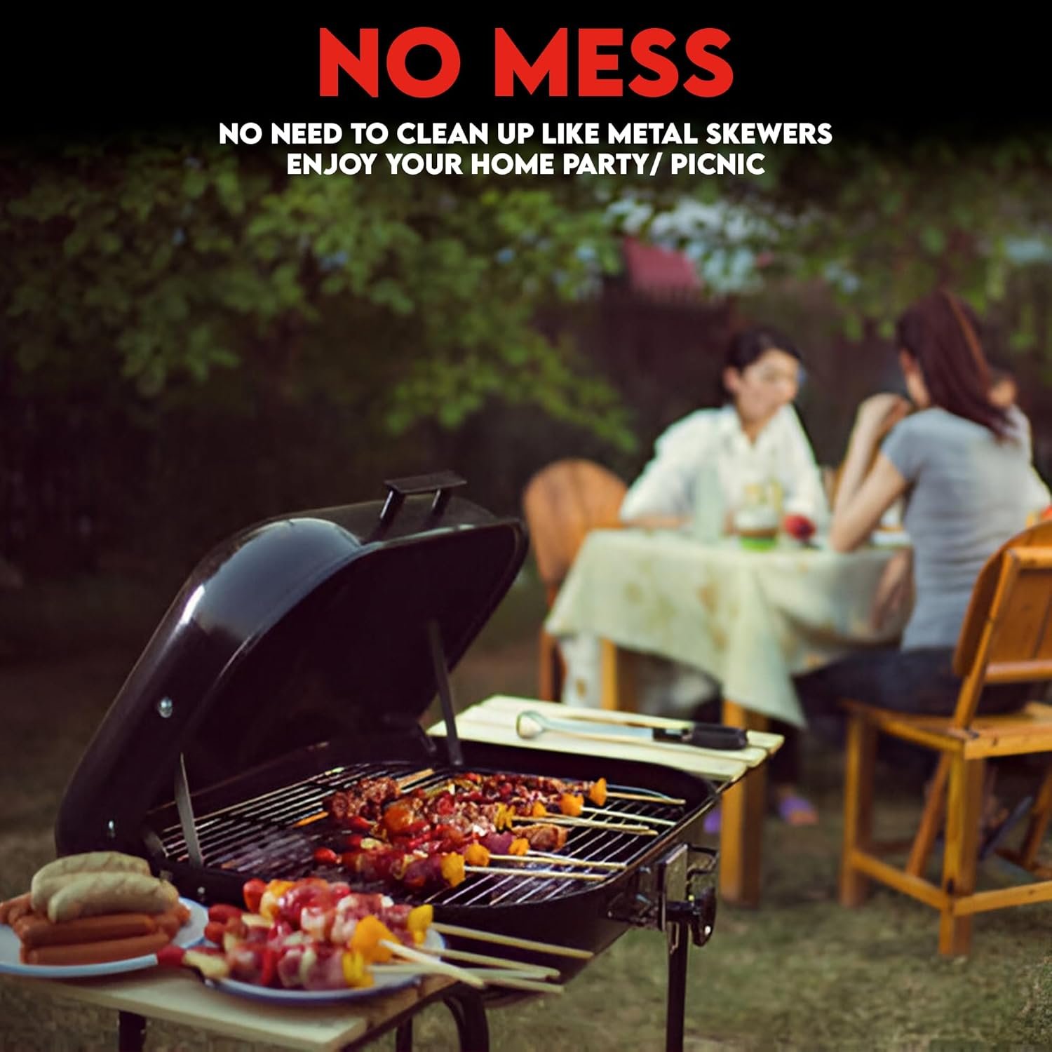 𝐄𝐜𝐨-𝐅𝐫𝐢𝐞𝐧𝐝𝐥𝐲 & 𝐃𝐢𝐬𝐩𝐨𝐬𝐚𝐛𝐥𝐞 & 𝐍𝐨 𝐍𝐞𝐞𝐝 𝐭𝐨 𝐂𝐥𝐞𝐚𝐧: Made of 100% natural bamboo wood material. After enjoy the barbeque grill and your time by the fire pit, who wants to clean off oils or the sticky mess? Just toss wooden skewers sticks in the campfire, barbecue stick will safely burn away and you are done. No need to clean up as you would with standard metal skewers.