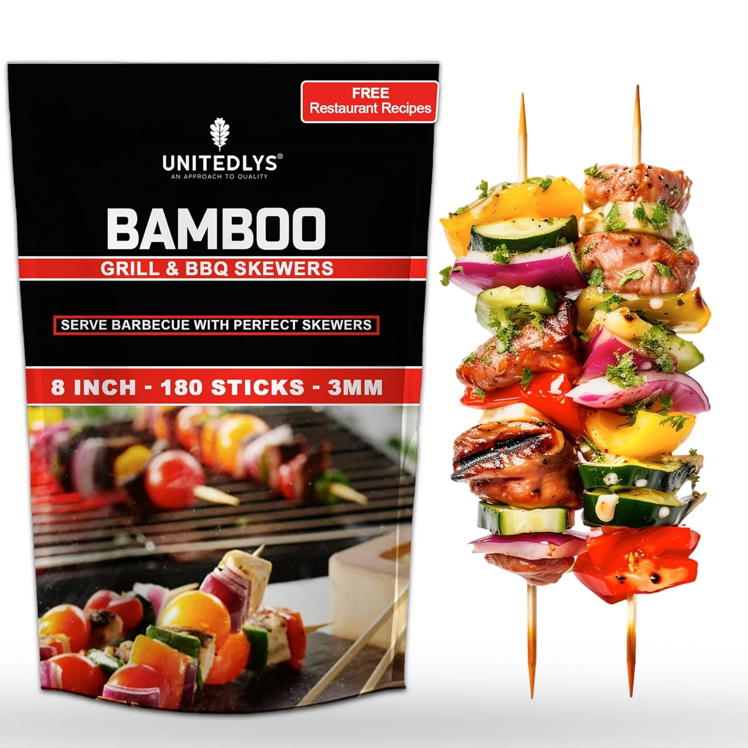 Customers find the bamboo skewers to be of good quality and worth the price paid. They are easy to use and clean, with one customer noting they can be reused after proper cleaning. The stability receives mixed feedback, with some finding them sturdy while others report them breaking within seconds. The thickness is also mixed, with some appreciating the good thickness while one customer mentions they’re too thin to hold BBQ weight. The recipe book aspect receives negative feedback, with multiple customers noting its absence.
