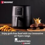 Bergner Masterpro Air Fryer with 1500 Watts, 4 Ltr Capacity, Air Fryer for Home to Bake/Grill/Roast/Heating/Defrost, 360 Degree Airflow Technology, 8 Preset Cooking Menu, Basket With Nonstick Coating
