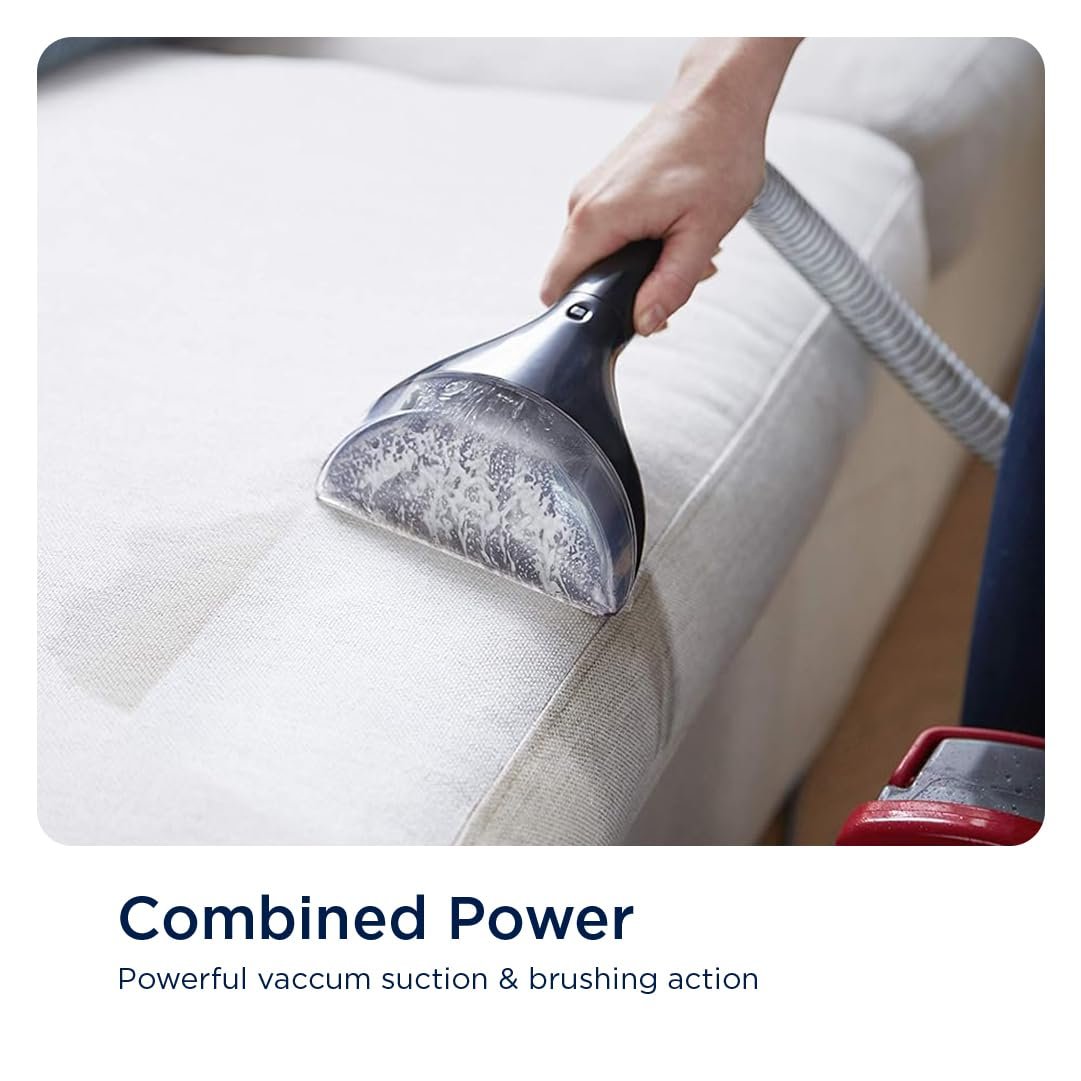 ✔️It includes an 8 cm Tough Stain Tool, a large 15 cm Tough Stain Brush & a sample bottle of BISSELL formula. Its broader brush head and larger, longer hose with slightly more power boosts the performance beyond the rest of the range.