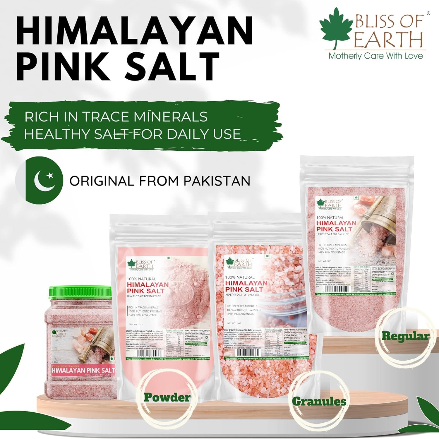 Bliss of Earth Pink Salt is the perfect substitution to the normal or iodized salt. The best pink salt is obtained in the foothills of Pakistan’s Himalayan range and fortunately we can get it from Bliss of Earth Pink Salt. My search for Pink Salt has landed on Bliss of Earth and after using it I am highly satisfied with this salt. To my surprise it doesn’t make my dishes salty anymore where the normal table salt does hence no compromise for taste and health..Apart from eating I have used it for pedicure and I am amazed with its healing property, relieved my foot pain soften the hard foot skin.Since very long I am using this Bliss of Earth Pink Salt I wish the product quality remains the same as always. Worth buying.