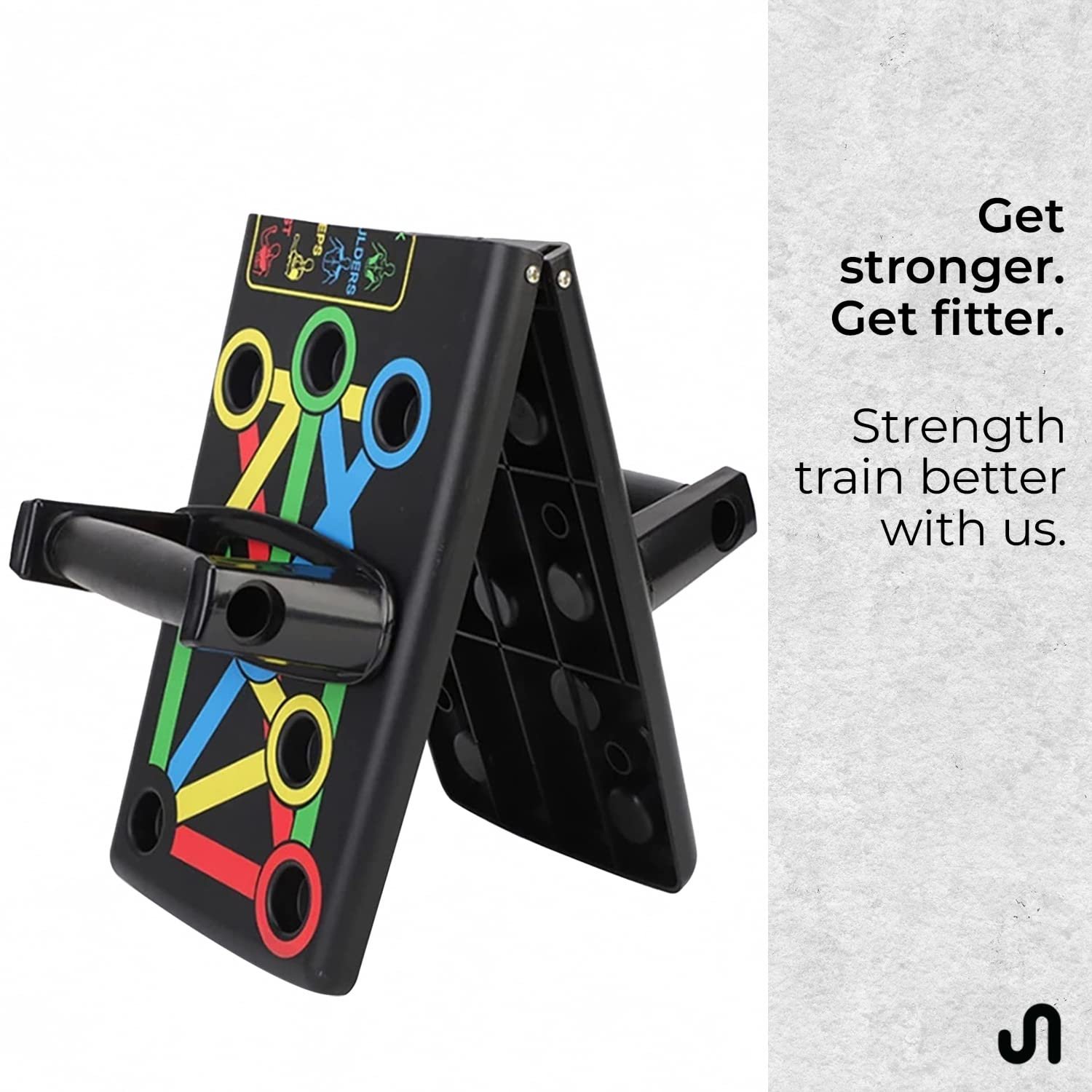 The Push-Up Board features color-coded, multiple handgrip positions that target different muscle groups, including chest, shoulders, back, and triceps. Easily switch between positions to customize your workout