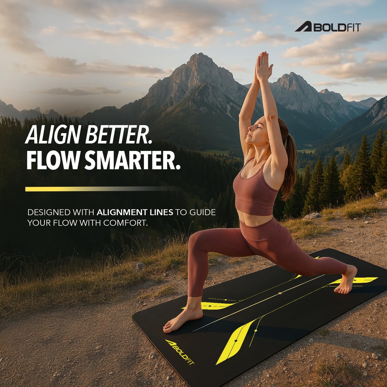 Boldfit Body Alignment Yoga Mat for Women and Men PU Material 5mm Thick Exercise YogaMat for Men for Workout, Yoga, Fitness & Exercise Anti Slip Yoga Alignment Mat for Home Gym Mat