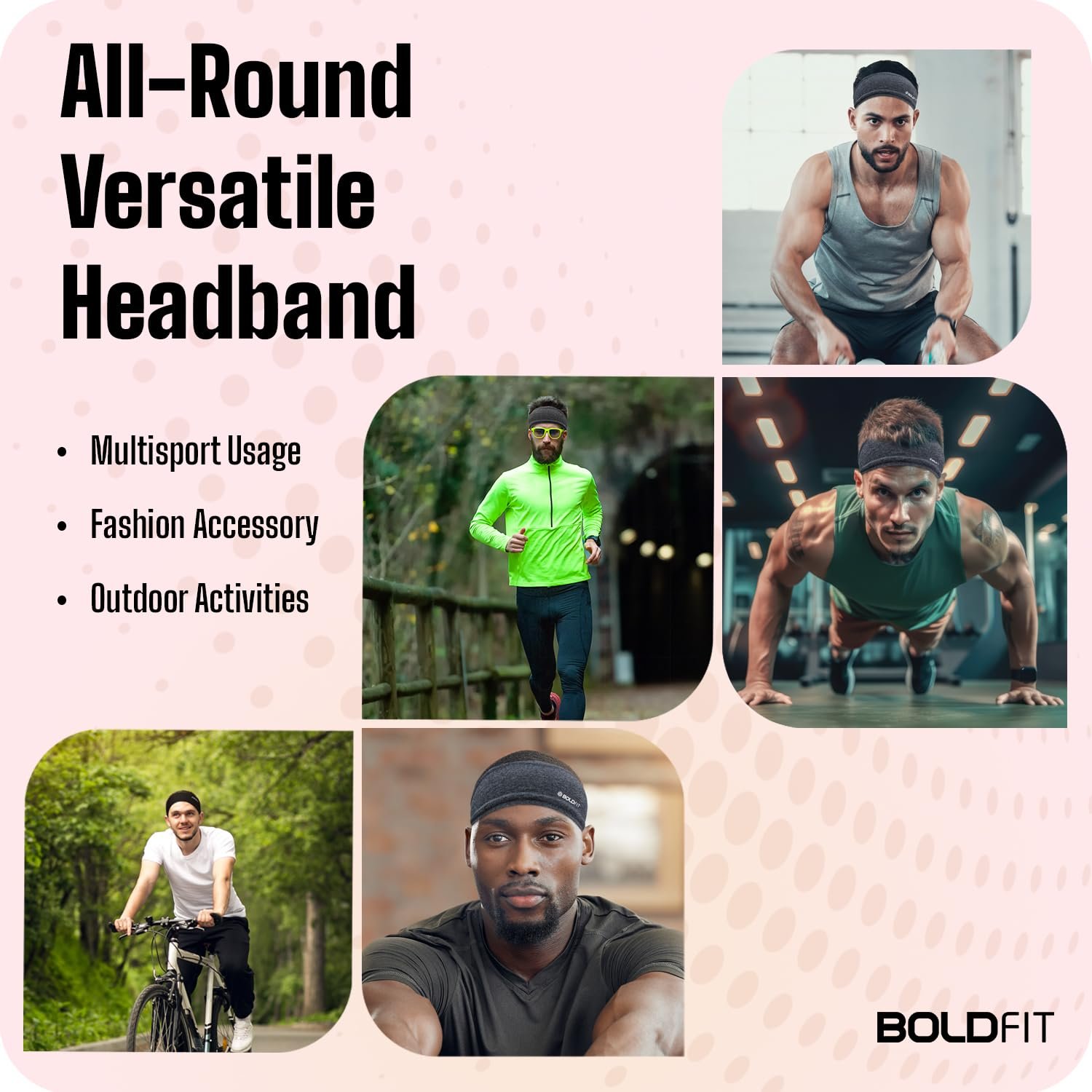 KEEPS SWEAT AWAY FROM EYES: Boldfit hair band for boys are designed with elastic band closure with extremely smooth texture that efficiently wicks sweat and stay comfortable after wearing for a long time. No more worries of your sweat coming down your face and neck when using this hair band men.ONE SIZE FITS ALL: Headband men show unisex design and perfect one-size-fits-all technology to fit snug and stays in place. The high stretchable to fit all for head circumference. They can keep your ears warm in the cold weather and wick your sweat away on hot. Great for long and short Hair. Fit virtually every head size and shape. Headbands for men, women, boys, and girls fit you all year long.MAX COMFORT: Our mens hair bands are lightweight, soft, and breathable fabric and our grip strip to keep your headband for women gym securely in place, headband has no-slip grips that keep it in place during your dynamic movements. we can assure that our head band will be the most comfortable solution you’ve tried. The inner strip is designed to be low profile which means it won’t leave a mark or become annoying over time.A MULTIFUNCTIONAL HAIRBAND : It can be used for any workout, sport, running accessories for men. The men hair band is incredibly suitable for almost every indoor/outdoor activity imaginable: workouts, running, gym sports, football, tennis, basketball, outdoor exercise, soccer, yoga, biking, fitness training, volleyball, cycling, spinning, boxing, skiing, hiking, fishing and beyond.EASY TO WEAR: The headbands for men sewn into the back of the headband allows you to put the hair bands for men on without the need for tying any knots. Very convenience to carry, easy to wash and use many times. Get instant confidence every day of the week. looks great with long or short hair , or with a messy bob. The beautiful wide sweat band not only keep you a wonderful look but also keep you r hair in style and absorb sweat.Made with breathable, silky-soft material, our headbands are perfect to wear no matter the weather. Take your trusty headband with you everywhere and anywhere. Style your hair according to the weather, from hot humid days to toasty winter nights. You could be hiking up a mountain or lazing by the beach, Boldfit’s headband will always come in handy.A stylish way to wick sweat and keep your hair in place during your workout. The elastic headbands for men has the ability to quickly absorb and evaporate sweat, and the comfortable wearing experience keeps the hair in place without causing stress or discomfort.