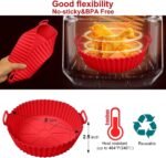 Strong and Durable – Our brand has developed a thicker and stronger silicone air fryer mat insert, surpassing disposable paper liners or tray sheets. This design improvement prevents food spillage, while the larger handles make it easier to grab. We are committed to delivering the best quality product to our customers, exceeding expectations.