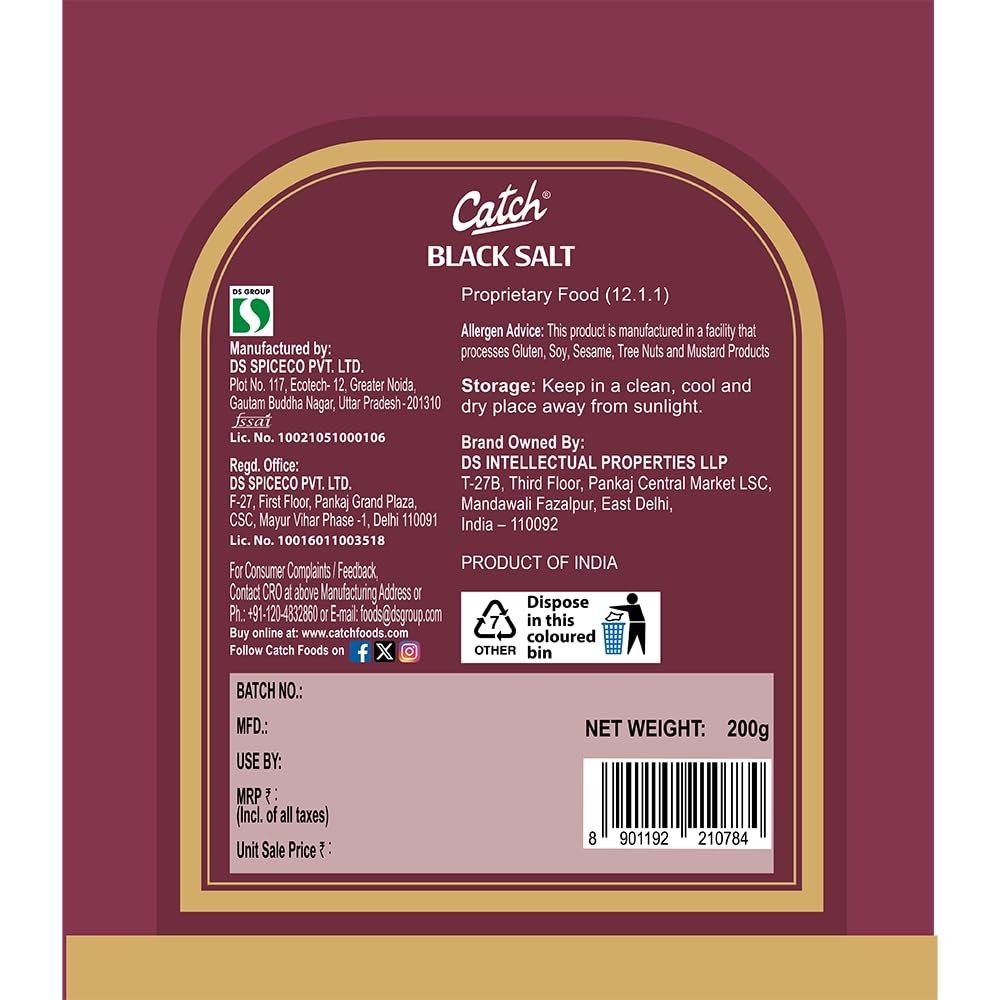 Catch Black Salt (Kala Namak) offers a unique tangy, smoky flavor that enhances chaats, salads, fruits, raitas, and refreshing drinks. Its mineral-rich composition and distinct aroma make it a staple seasoning in Indian kitchens.