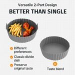 CBK Air Fryer Liners I Round Silicone Basket Baking Tray with Middle Partition, Pot with Ear Handles, Nonstick Reusable Heat Resistant, Cooking Oven Insert Accessories (Multicolor)(8 inch, Pack of 1)