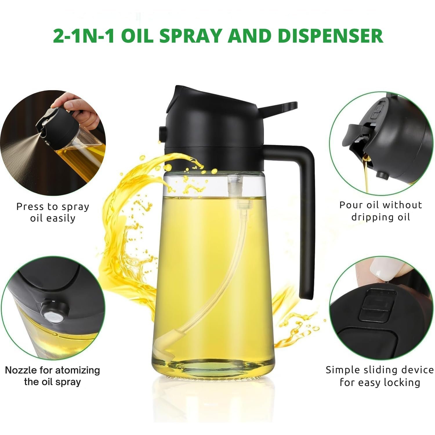 CELA 2 in 1 Glass Oil Sprayer and Dispenser Bottle – 500ML for Cooking, BBQ, Frying, Baking, Oil Sprayer for Air Fryer (Multi Color)