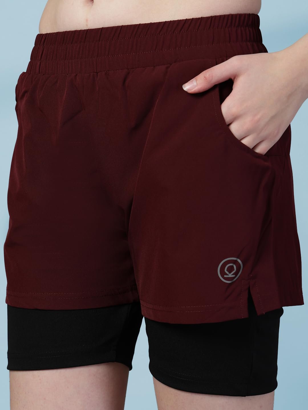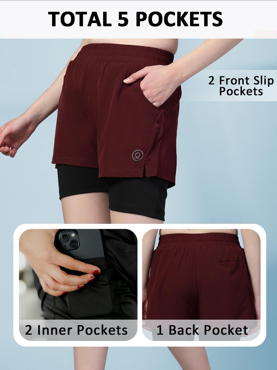 CHKOKKO Sports Shorts for Women Running Gym Workout – Dry Fit Quick Dry Double Layer Inner Compression with Pockets | Breathable Lightweight Athletic Wear Above Knee