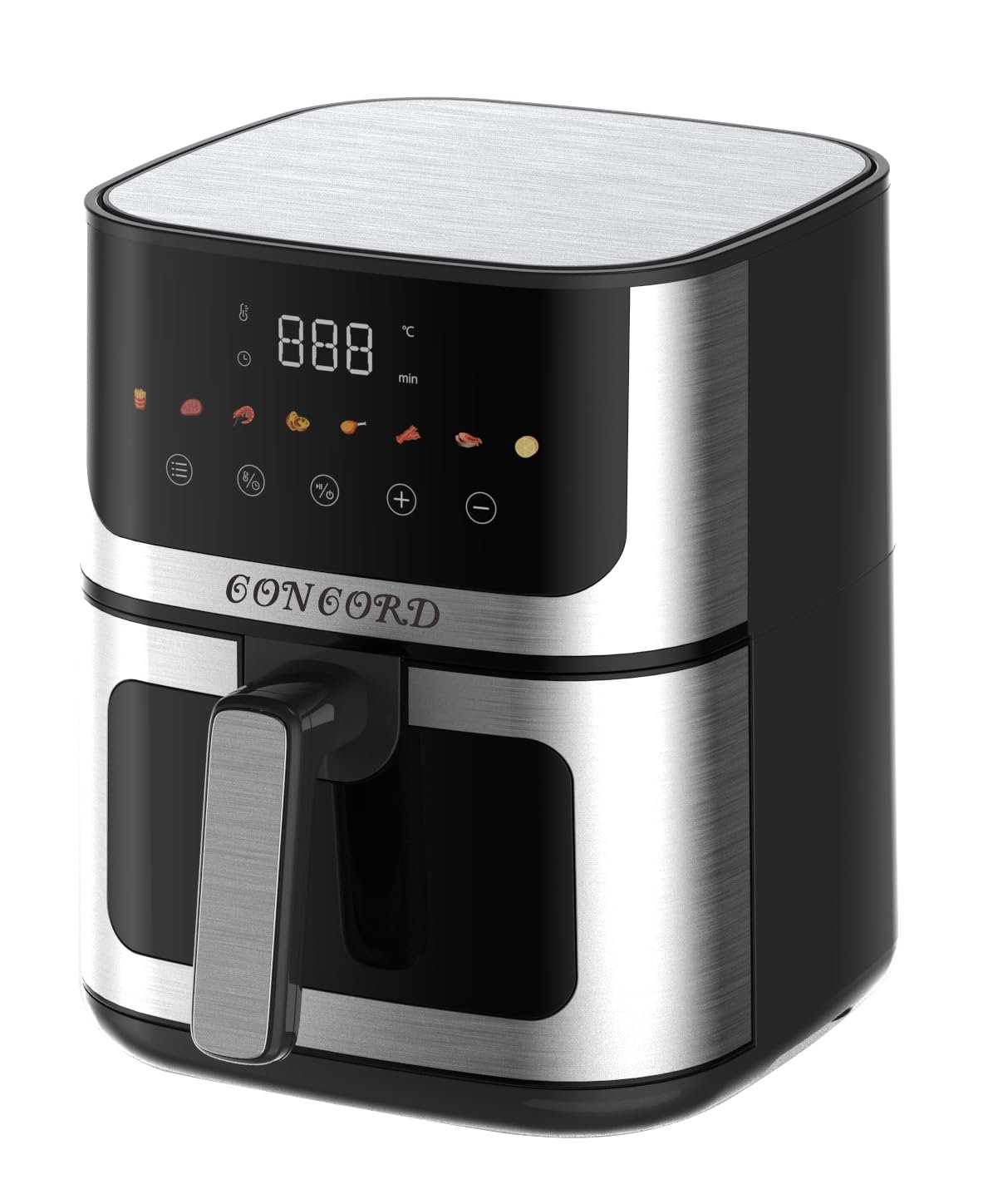 Concord Digital Air Fryer For Home 5L Oven – Digital Coloured Touch Screen – See-Through Window – Stainless Steel Body-1400W- 1.5m Long Cord (Black & Silver)