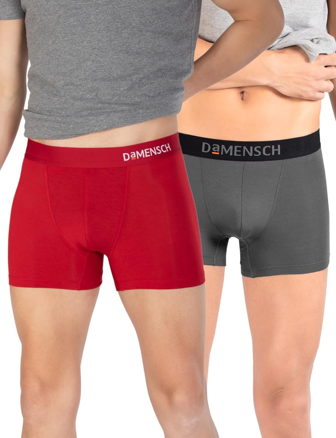 DAMENSCH Men’s Modal Trunks (Pack of 2) (DAM-ER-MIX-T-WG-TR-PACK-2-M_Wilsen Grey, Tango Red_M)