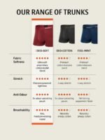 The Deo-Soft Supima Modal Trunks are one super-comfortable underwear. If you’re unsure where to start, this is a foolproof option for the majority of men. And if that’s not reason enough, these Trunks are innovated with the world’s finest Supima cotton. Expertly crafted with Modal, Supima Cotton and Elastane, with these underwear you can be assured of comfort, support, and longevity. These mens clothing essentials are ideal for casualwear everyday usage, all-season wonder-wear. Made in India, for the World.