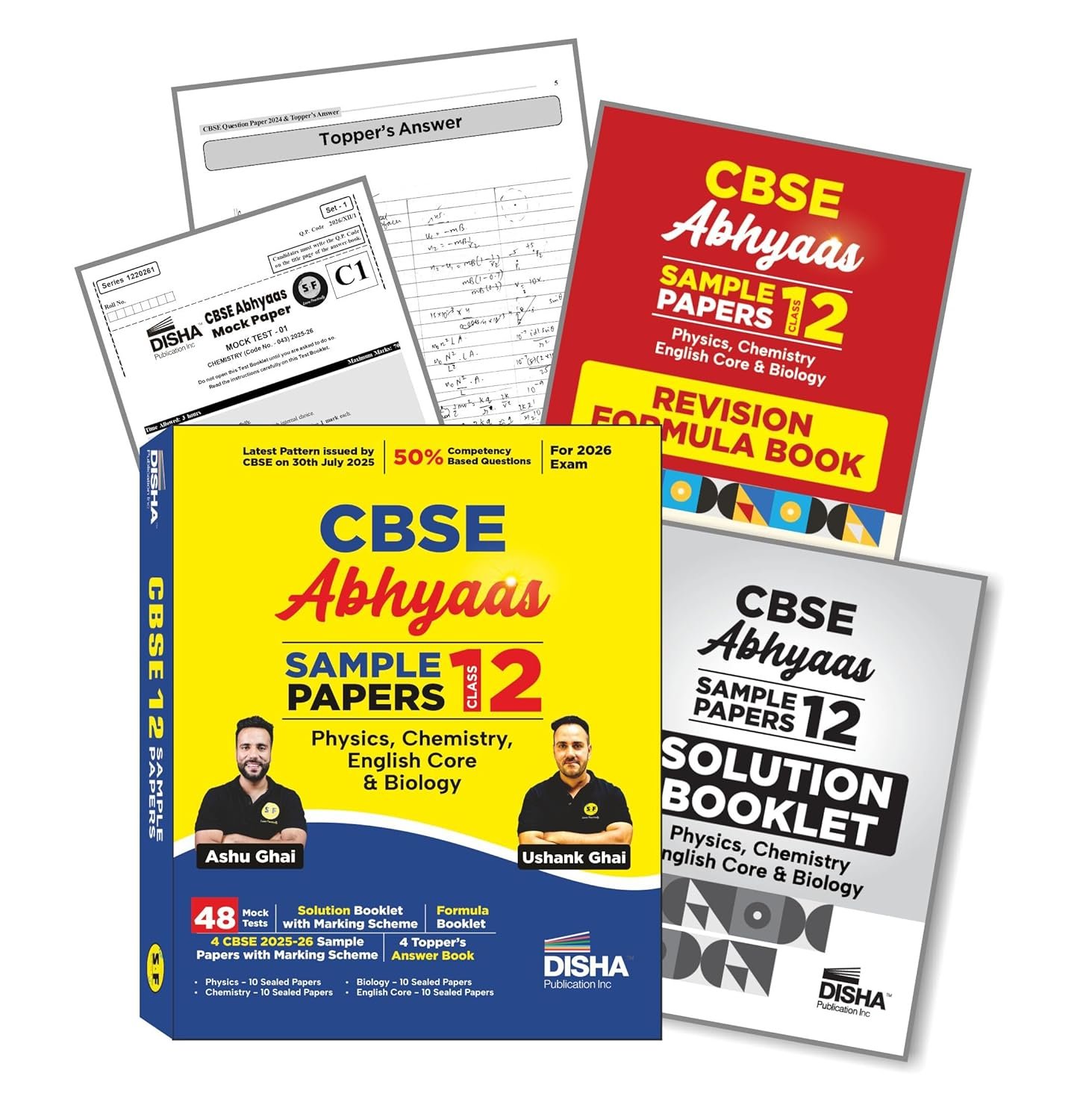 Disha CBSE Abhyaas Sample Papers Class 12 – Physics, Chemistry, Biology & English Core | 100% Solutions with Marking Scheme | 40 Test Booklets, CBSE 2025-26 Sample Papers & Topper’s Answer Sheets