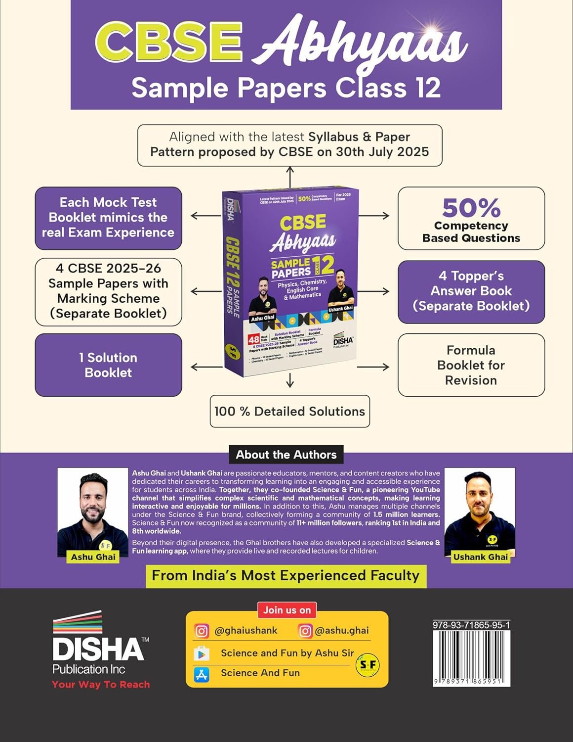 CBSE Abhyaas Sample Papers Class 12 Physics, Chemistry, Mathematics & English Core Boxset is a unique toolkit designed by the Most Experienced CBSE Faculty, Ashu Ghai and Ushank Ghai, who are well known for the contribution to the CBSE students through their youtube channel Science & Fun.