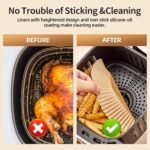 Materials: 8 In square air fryer paper is made of food grade parchment paper and silicone oil coating, unbleached, no fluorescent agent, BPA-free, PFAs-free, please use it with confidence