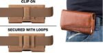 Dual Phone Belt Holster Leather Case Cover Clip Magnetic Closure Compatible with Mobile 6.8 inch Phone Holder – Light Brown
