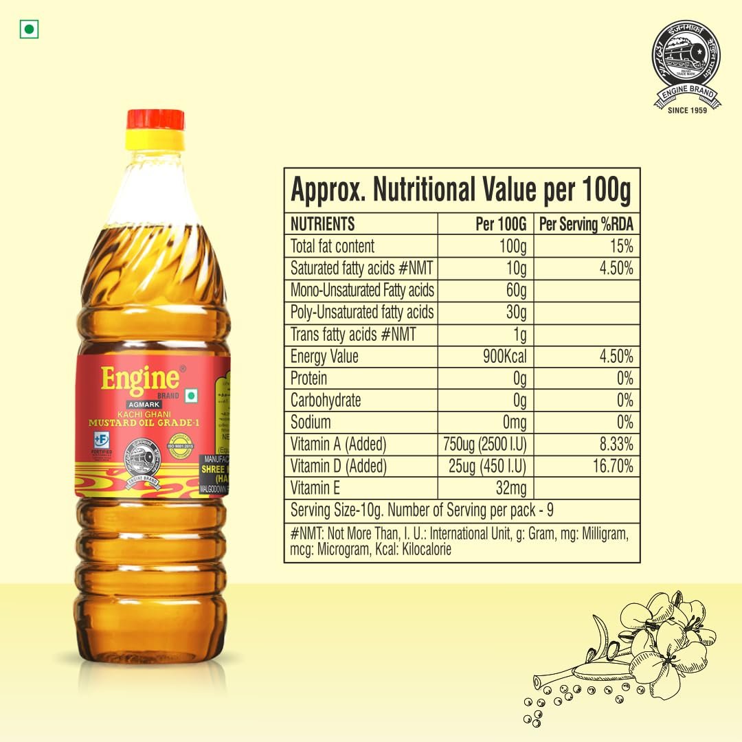 Engine Brand Kachi Ghani Agmark Grade – 1 – Mustard Oil – 1 Liter PACK OF 12 | Good for heart health