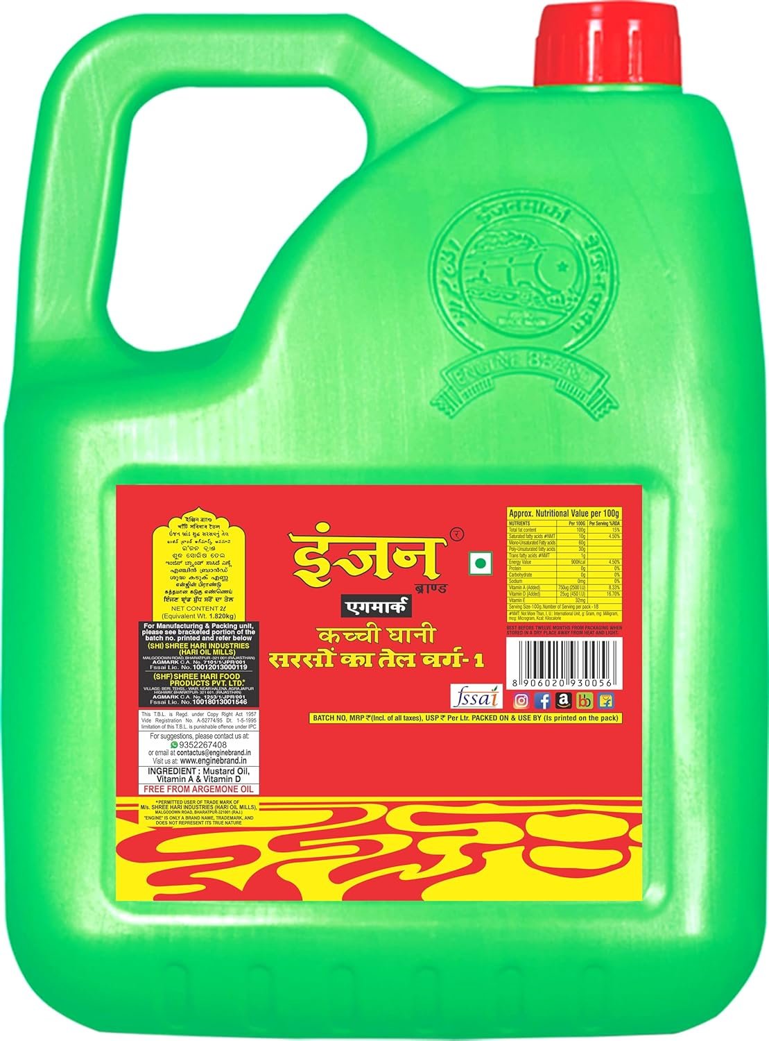 Engine Brand Kachi Ghani Agmark Grade – 1 Mustard Oil – 2 Liter Jar