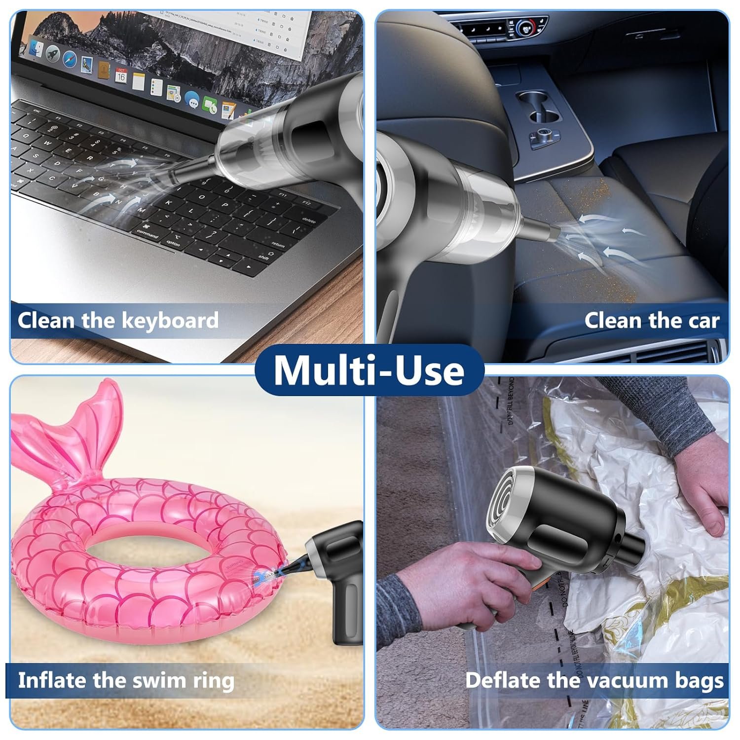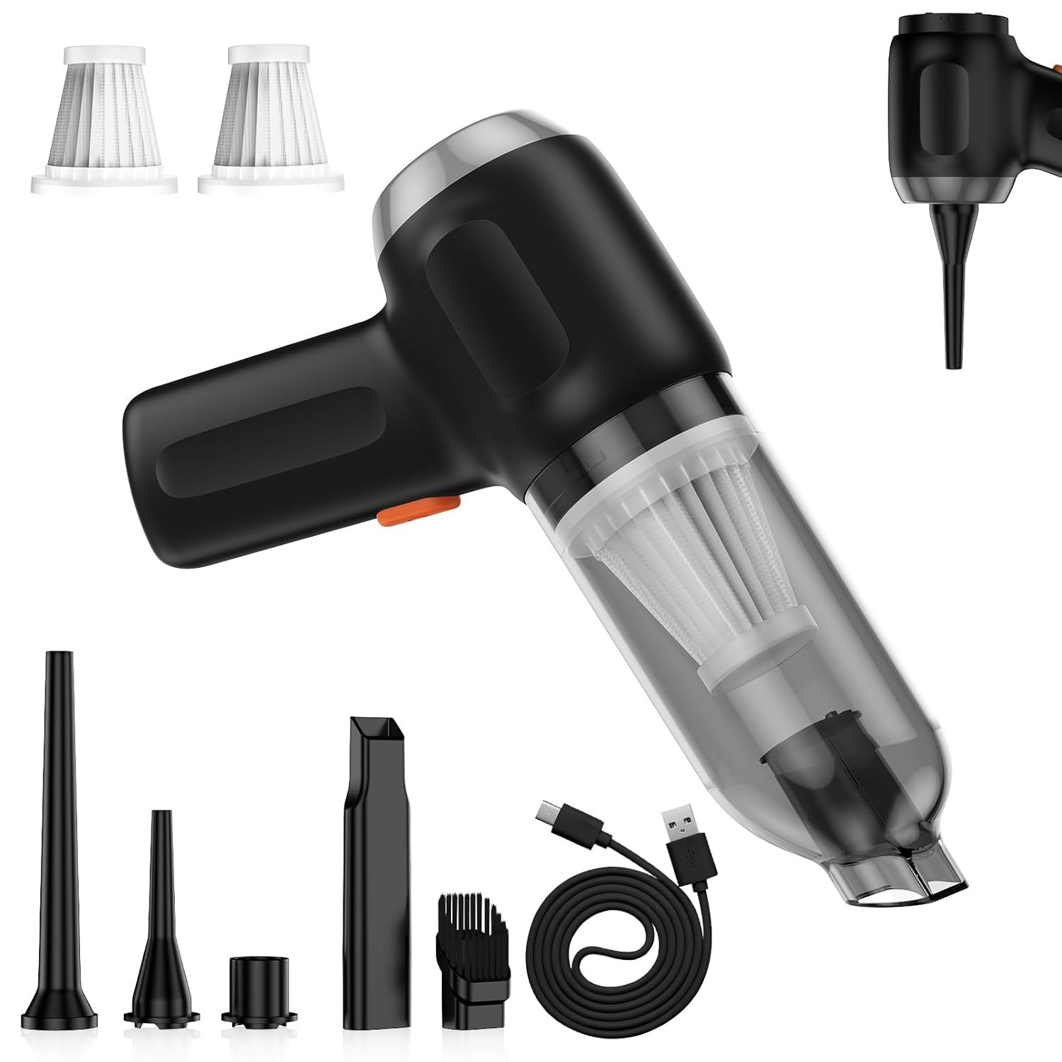Versatile Vacuum Cleaner: This compact vacuum is perfect for everyday cleaning, with powerful suction that effortlessly tackles dust in tight corners. One end features an air blower, ideal for clearing debris from camera lenses or piano keys, or install the nozzle on this item as a hand pump to inflate life jackets and pool floats.