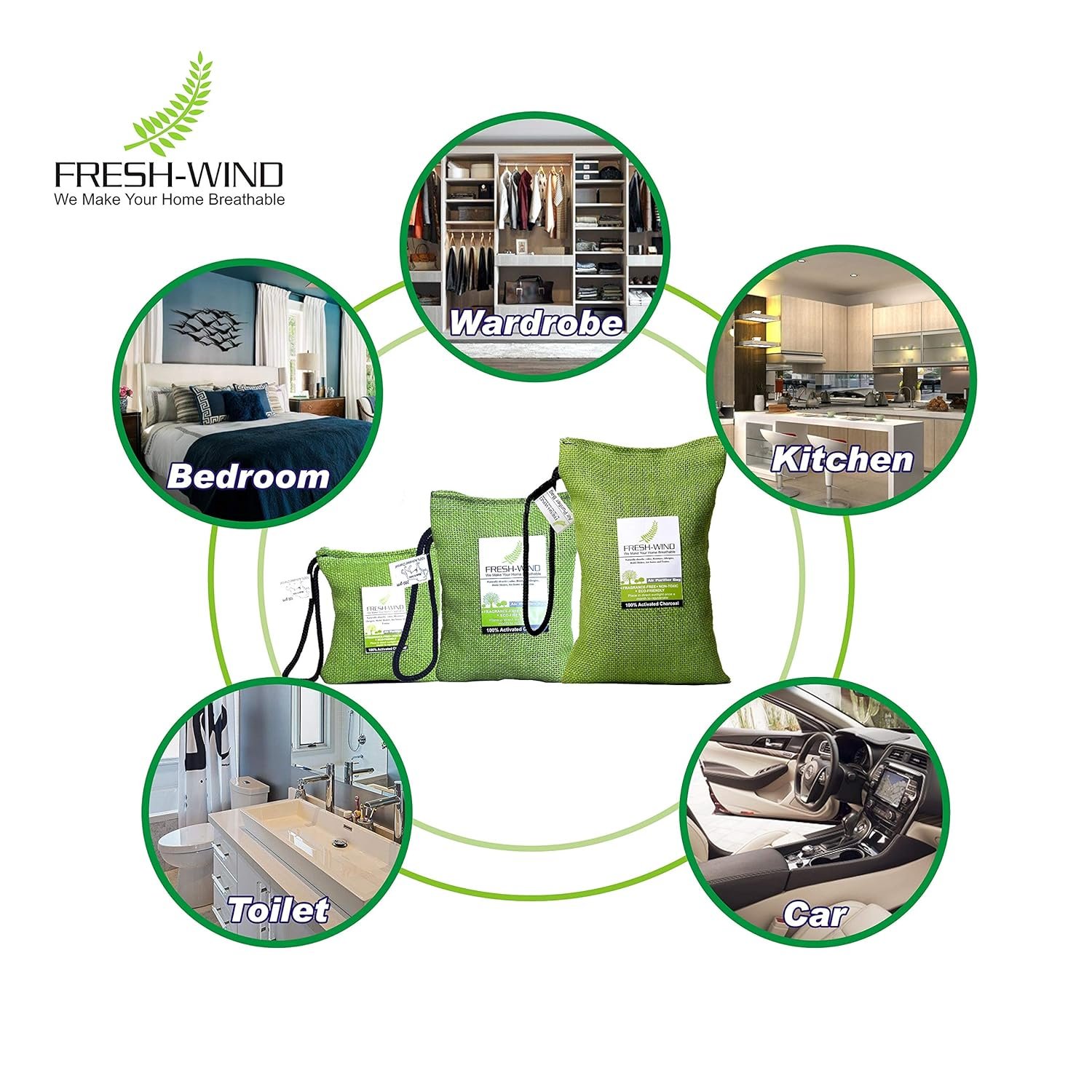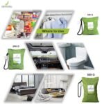 The FRESHWIND Air Purifying Bag is an easy and convenient way to maintain fresh, dry and odorless environment. Made of just one incredibly powerful, natural ingredient, bamboo charcoal, the Bag is continuously working to effectively absorb and remove odors, allergens and harmful pollutants and to clean and freshen the air. The bamboo charcoal neutralizes even stubborn smells, such as those caused by smoke, pet urine, cat litterboxes, wet dogs, gym shoes and more. The freshwind odor absorber is also excellent for use in damp, musty environments, where it will absorb excess moisture to prevent mold, mildew and bacteria from forming. Finally, an air cleaner that is good for people and tough on bad smells while it automatically freshens and cleans the air. The Moso Bag is a natural, alternative to chemical deodorizers, candles, gels, sprays and crystals that are not healthy for people and not good for the planet. The natural bamboo charcoal is sealed inside a beautifully stitched linen bag that can be placed on any surface. To reactivate, place the bag outside in the sun once a month for at least one hour. With proper care, the Bags will last up to two years and at the end of the bags lifespan you can recycle the bamboo charcoal into the soil. The 200 gm Bag covers areas up to 90 square feet. Excellent for small spaces such as cars, closets, bathrooms, pet areas and laundry rooms. The bag is easily portable and can be moved from room to room, and from house to car to boat.