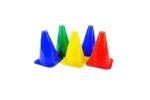 A lot of practise and training are necessary for many sports, which is why these brightly coloured training cones are useful. Round and colourful cones are bundled together to create a lightweight, efficient set of sports training gear. An important coaching aid and training tool for various sports training drills.