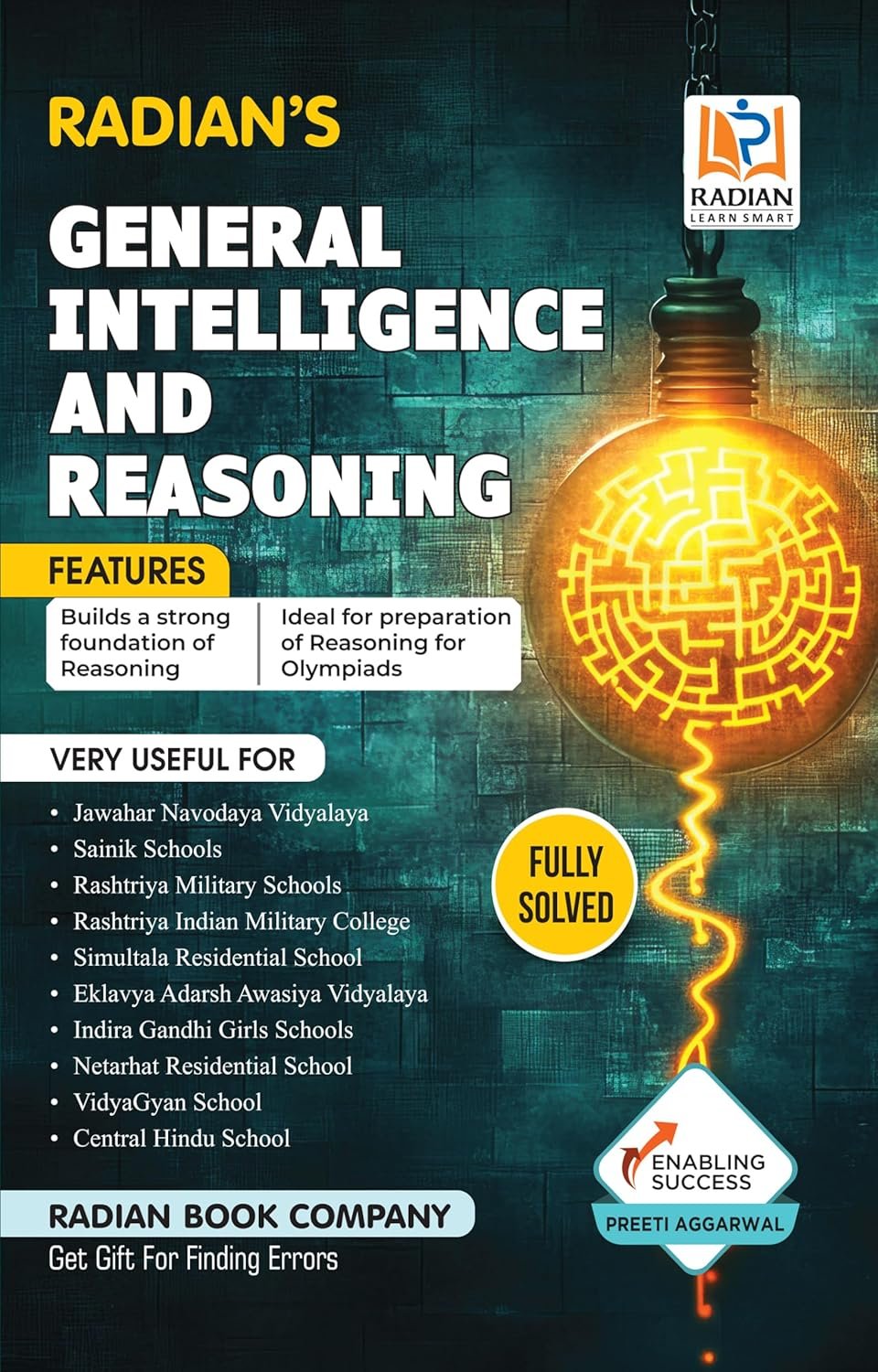 Radian’s General Intelligence & Reasoning Guide Book for JNV, Sainik School (AISSEE), RMS, and other Competitive Exams in English 2025. Study Material Based on New Syllabus. This is General Intelligence & Reasoning chapter-wise complete study guidebook with previous year solved questions. The book contains adequate study and practice material with detailed explanatory answers. The book is highly recommended for the aspirants to prepare for Sainik school entrance exam (AISSEE), Jawahar Navodaya Vidyalaya(JNV), Rashtriya Military School (RMS), Netarhat Residential School, Simultala Residential School, Central Hindu School, Indira Gandhi Girls School, Rashtriya Indian Military College, Eklavya Adarsh Awasiya Vidyalaya, VidyaGyan School, All other Entrance and Competitive Exams, etc.