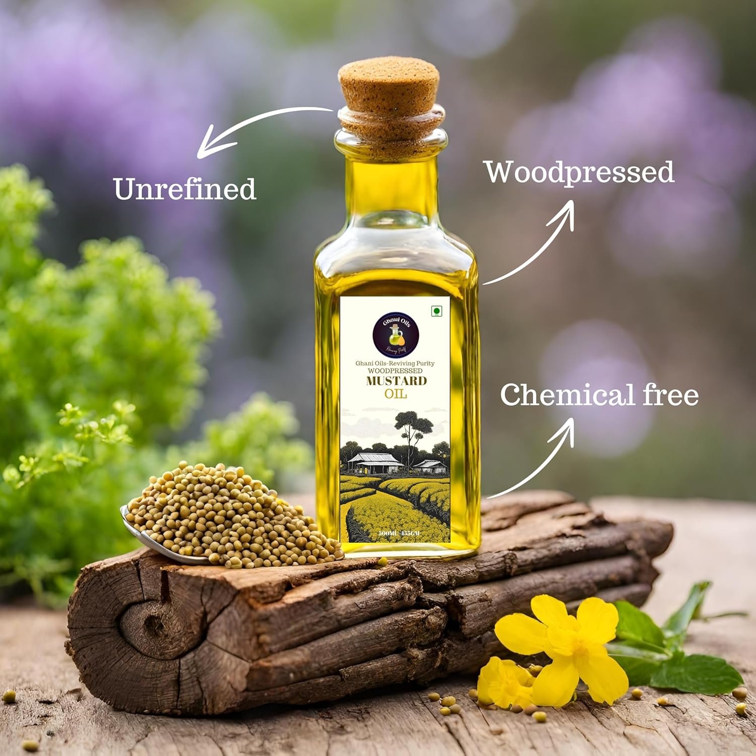 Ghani Oils Woodpressed Mustard Oil 500ML/Kacchi Ghani/Cold Pressed/Chemical-Free Mustard Oil for Cooking.