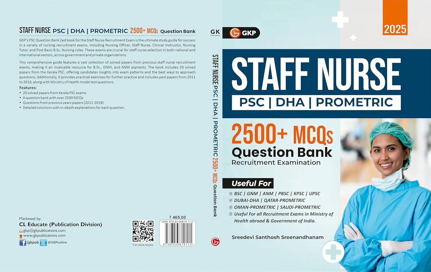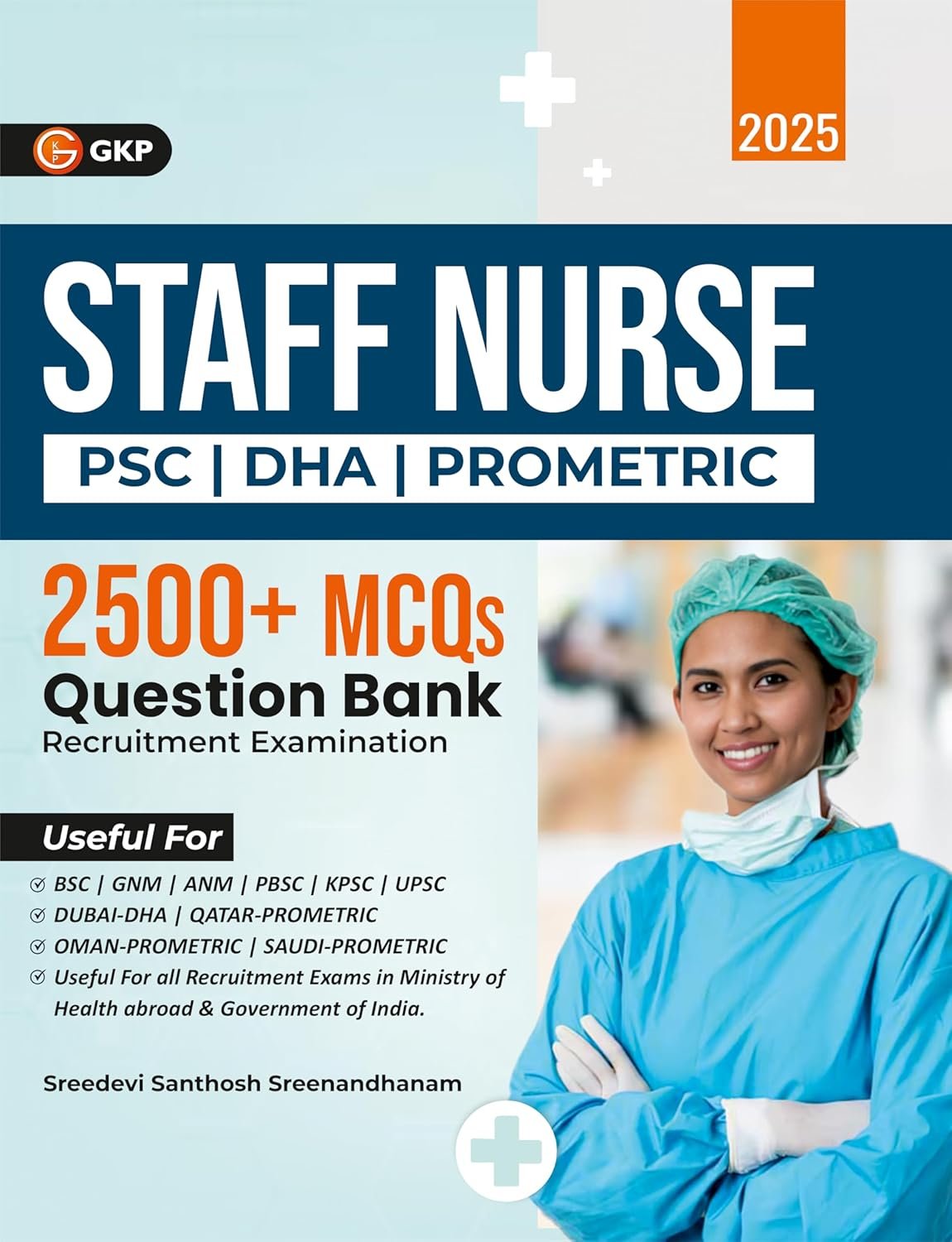 GKP Staff Nurse 2025 : PSC | DHA | Prometric | 2500+ MCQS Question Bank | 2nd Edition for Medical Entrance Exam | 20 Solved Papers from Kerala PSC Exam