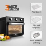 Has 3 tray options – Mesh basket, Wire rack for grilling, Mesh basket for air frying