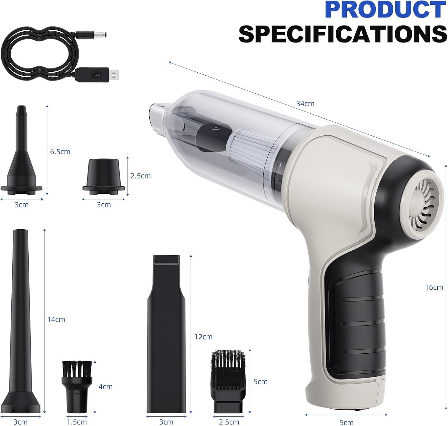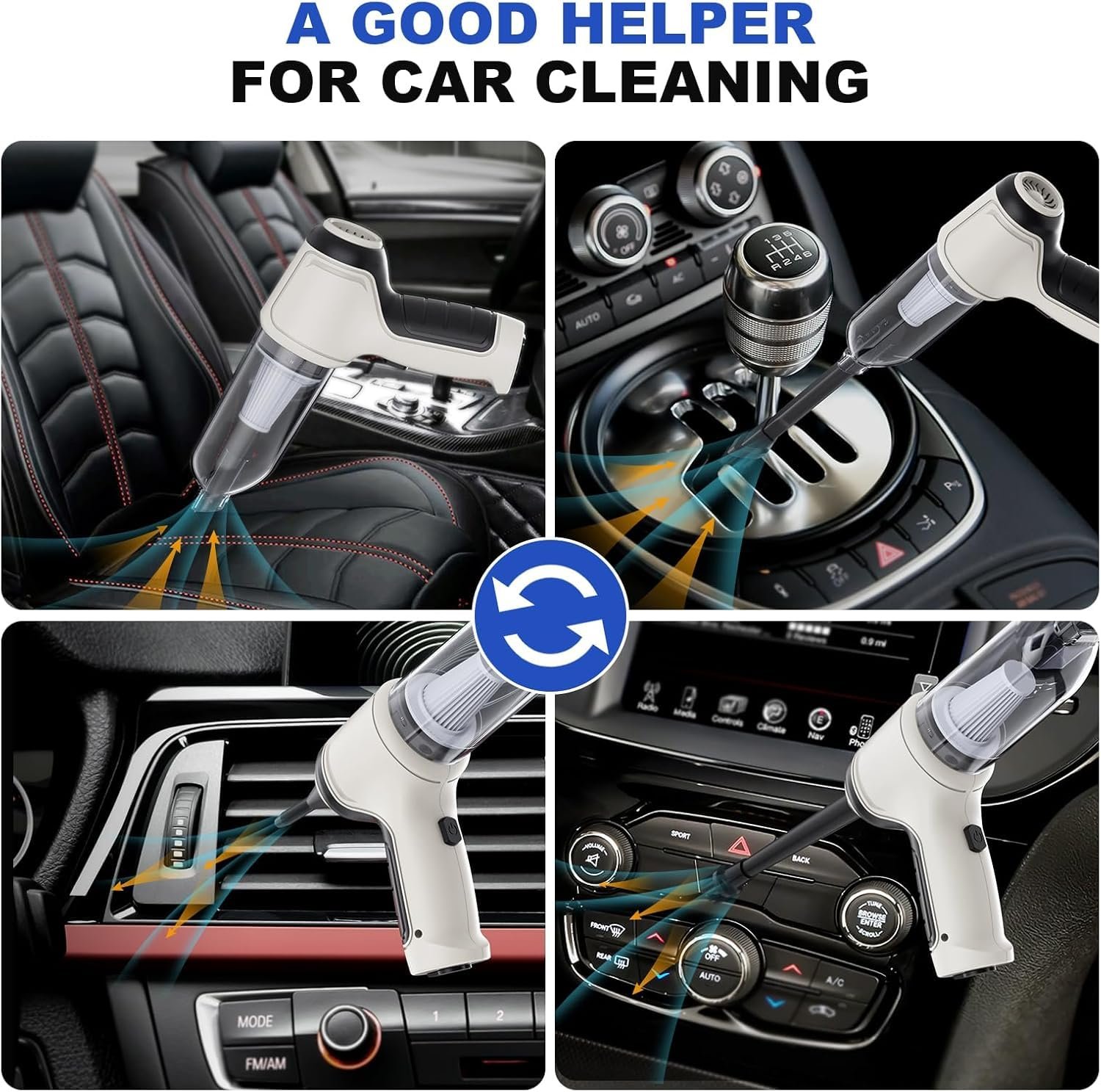 Multifunctional Car Vacuum Cleaner: Handheld vacuum cleaner adopts advanced 3-in-1 technology of suction, blowing and charging to meet your daily needs in all aspects. Equipped with different nozzles for blowing, vacuuming and extracting.