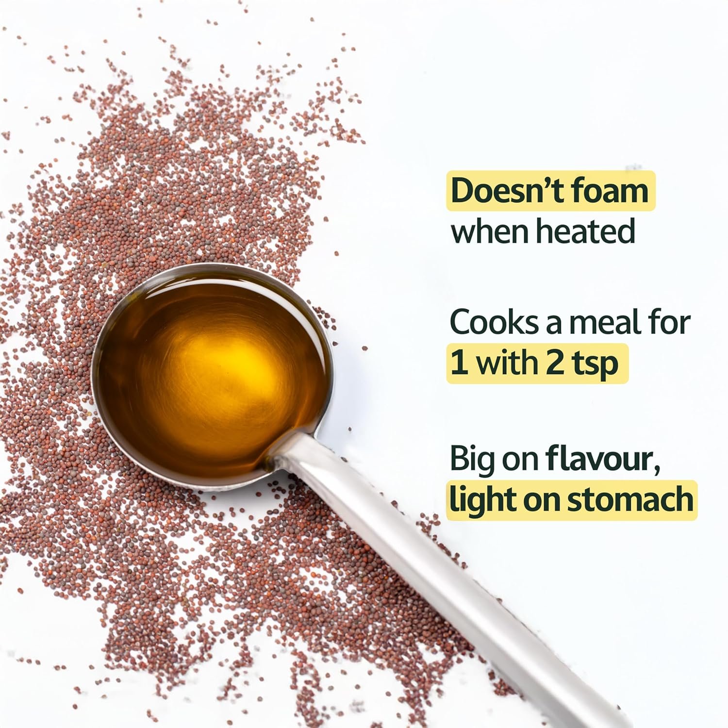✅ COOKS EVERYTHING, MAKES IT FLAVOURFUL: Moderately pungent, great for frying, sautéing & more. As versatile as regular oil, but with better flavour.