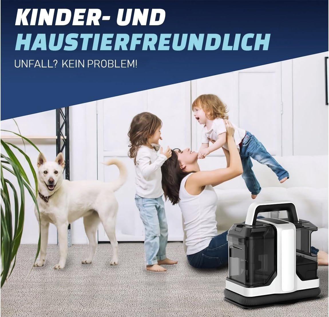 With a strong suction power and a special cleaning solution, you can remove even the most difficult stains. Suitable for pets and children: pets and children can easily cause stains or accidents.