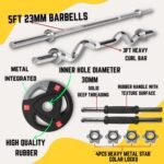 HASHTAG FITNESS Metal Integrated Rubber Plates, Gym Equipment Set For Home Workout With 5Ft Rod, 3Ft Curl Rod And Star Nut Dumbbell Set For Home 10Kg To 100Kg, Black