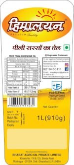 Experience the culinary marvel of Himalayan Yellow Mustard Oil, now in a convenient 1-litre pack of 4, proudly bearing the Himalayan Brand. This pure and authentic oil is fortified with Vitamin A & D, transcending ordinary cooking oils by delivering not just flavor but also essential nutrition. Crafted from premium mustard seeds, this liquid gold undergoes meticulous cold pressing, preserving its natural essence. Immerse yourself in the rich, robust flavor, a hallmark of the Himalayan Brand’s commitment to excellence. With a tag of vegetarian and allergen information highlighting its mustard base, it’s a culinary companion suitable for diverse tastes and dietary preferences. Embrace the liquid form of Himalayan Yellow Mustard Oil, elevating your culinary creations with a touch of tradition and well-being.
