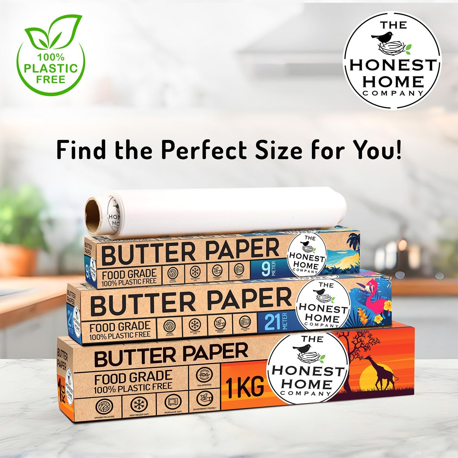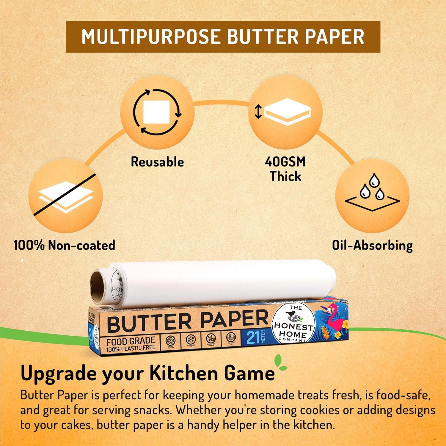 Honest Home Butter Paper Roll | 21 Meters | 40 GSM, 100% Non-Coated | Easy Tear with Cutter | for Air Fryer and Roti