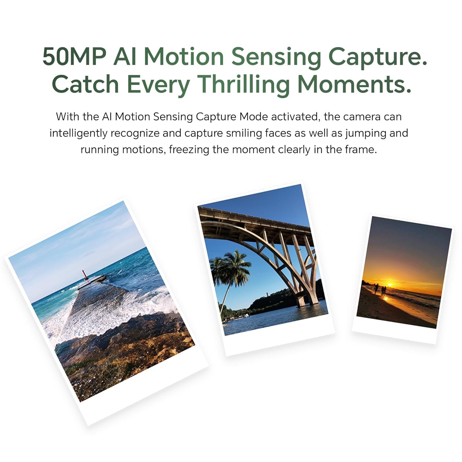 Smart Motion Capture: The 50 MP AI Motion-Sensing Camera intelligently captures smiling faces or moving subjects—perfect for everyday moments.