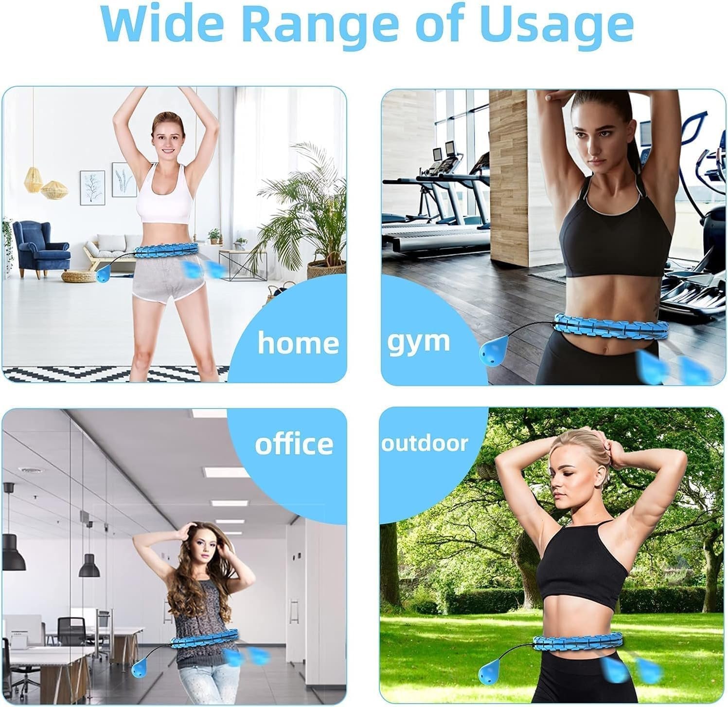 The video showcases the product in use.The video guides you through product setup.The video compares multiple products.The video shows the product being unpacked. Smart Weighted Hula Hoop Merchant Video