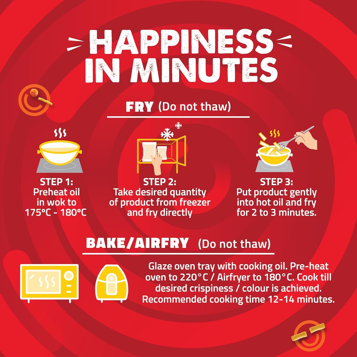 Fry, Bake or Air-Fry – Ready in Minutes – No prep, no mess! Quick and easy to cook your way.